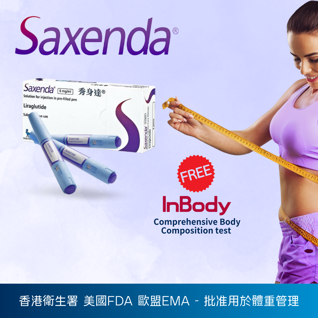 👉 適合初次體驗,開啟健康之旅 Perfect for first-time users to begin your health journey - Saxenda 秀身達減肥筆(三支 +醫生諮詢)加送 價值$500 Inbody 身體成分分析Saxenda Body Slimming Pen (Three Pens +Dcotor Consultaiton ) + Complimentary $500 InBody Comprehensive Body Composition Test